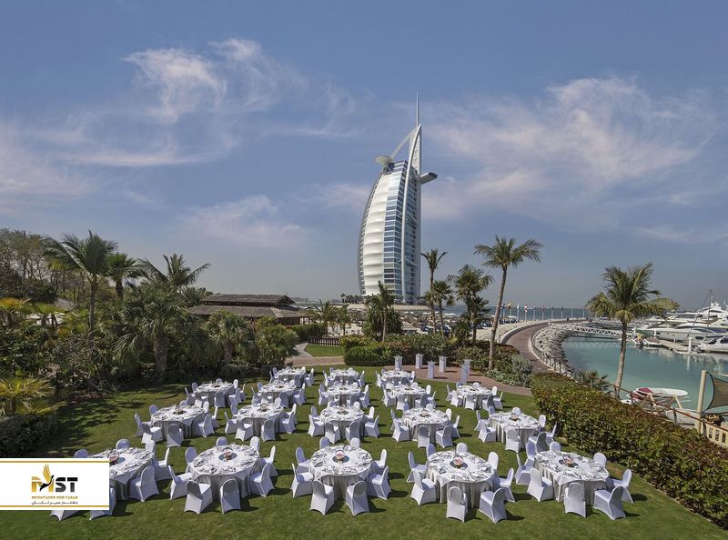 این هتل با منظرهای از خلیج درخشان، برای همه کسانی که به دنبال برگزاری مراسم عروسی ساحلی در دبی هستند بسیار ایدهآل است. این اقامتگاه، تنها چند قدم دورتر از مجللترین هتل شهر یعنی برج العرب دبی فاصله دارد و باغهای گل در این مجموعه، تصویر زیبایی را برای یک مراسم آرام و خصوصی رقم میزنند. البته اگر میخواهید به فضایی کمی فانتزیتر دسترسی داشته باشید، سالن رقص این هتل نیز سلیقه شما را راضی خواهد کرد. بعلاوه تیم برنامه ریز، به طور خستگی ناپذیر در پشت صحنه تلاش میکنند تا ساعاتی جادویی را برای زوجها فراهم کنند.