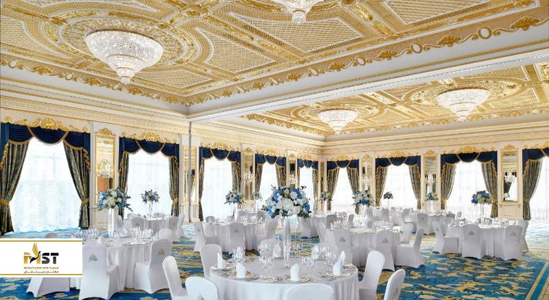 آیا بلند پرواز هستید و دوست دارید مراسم عروسیتان را در سکوی پرواز هلی کوپتر برگزار کنید؟ خب طبقه آخر این برج نمادین و بادبانی شکل، چنین فضایی داشته و محیطی بسیار باز و پانورامایی برای این مراسم در اختیارتان قرار میدهد. این برج، یکی از شیکترین هتلهای دبی به شمار میآید و تجمل گرایی را به حد کمال رسانده است. بنابراین برای برگزاری عروسی رویایی شما نیز سنگ تمام میگذارد.