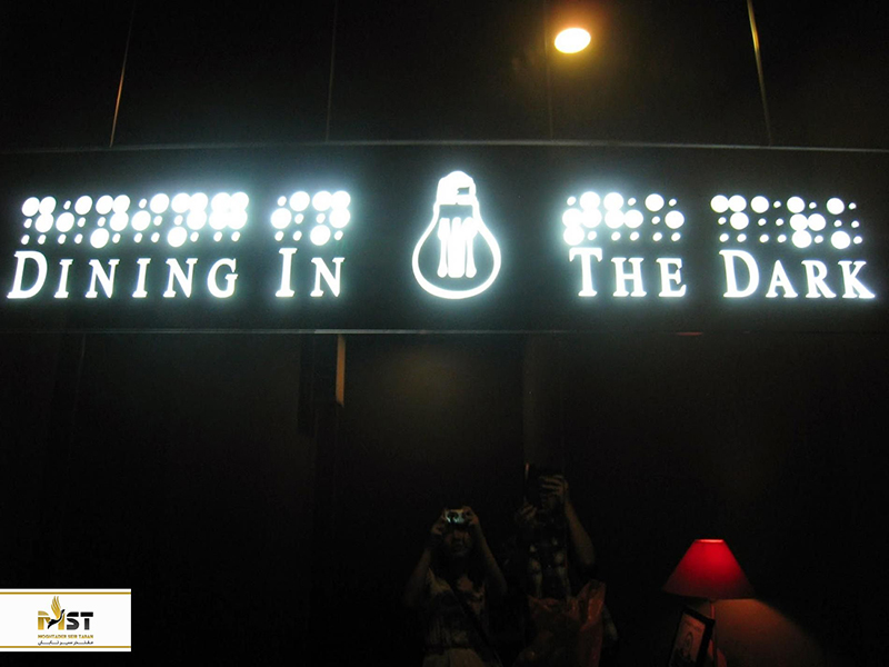 همانطور که از اسم رستوران Dining In The Dark کاملا پیداست، شما وقتی وارد محیط رستوران میشوید، در تاریکی کامل فرو خواهید رفت و باید بدون حس بینایی خود ساعتی را سر کرده و به میل کردن غذا و گفتگو با دوستان یا همسفرتان بپردازید. حتی چشمبندهایی به شما داده میشود که از هر گونه ورود نوری جلوگیری شود.