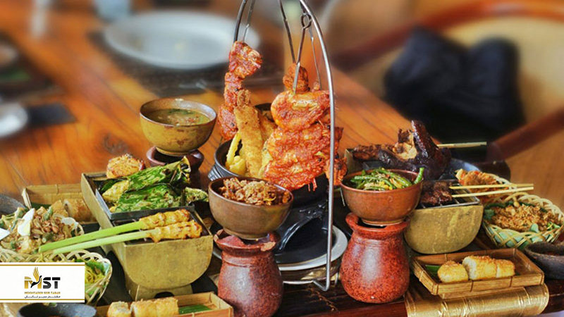 احتمالا تا به حال توجه کردهاید که سبک غذایی هر منطقه بنا به آب و هوا و نشات گرفته از فرهنگ آنجاست. بالی آب و هوایی گرمسیری دارد. روزها آفتابی و شبها خنک است. در ماههای دسامبر تا مارس معمولا هوا گرما و رطوبت بیشتری دارد اما از ماه ژوئن تا سپتامبر، رطوبت هوا به نسبت کمتر میشود. به همین خاطر، غذاهای اندونزیایی هم پر از ادویهاند و از طعم دهندههای مختلفی برای پخت و پز استفاده میکنند. غذای سنتی بالی، معمولا برنج یا نـودل سرخ شده همراه با میگو، ماهـی و سبزیجات است که با سرکه یا لیمو سرو میشود و طعم لذیذی دارد. غذای خوشمزه دیگری نیز با مرغ کباب شـده درست میکنند که مزه تندی دارد. به این شکل که مرغ را با چوبهای درخـت لیمـو به سـیخ میکشند و پس از غلتاندن در سـس مخصوص، آن را بر روی آتش میپزند. سعی کنید مزه غذاهای محلی آنها را در مدت زمان سفرتان امتحان کنید.