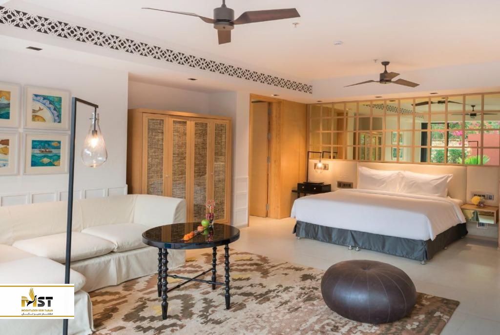 سوییتهای این هتل گران قیمت با سقفهای سفالی و درختانی که آنها را احاطه کردهاند، تصویری جذاب را ارائه داده و همهی آنها نیز رو به دریا واقع شدهاند. همانطور از اسم این محل پیداست، تاج هالیدی ویلیج دارای یک مرکز اسپا و سلامتی بسیار عالی نیز بوده و در کنارش زمین مینی گلف، سالن بازیهای میزی همچون بیلیارد و تنیس روی میز و خیلی امکانات تفریحی دیگر را برای شما فراهم کرده است. نکته دیگر این ریزورت اجازهی ورود حیوانات خانگی را با هماهنگی داده و امکاناتی را نیز برای نگهداری آنها در اتاق برایتان فراهم میکند. در مجموع فضا و امکانتات تاج هالیدی ویلیج واقعا عالی بوده اما از نظر قیمتی، نسبتا بالاست.
