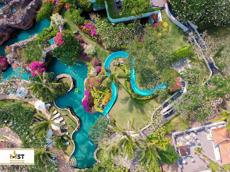 هتل و پارک آبی گران سوریا (Gran Surya): این هتل ۳ ستارهی بزرگ، یکی از اقامتگاههای نسبتا مقرون به صرفه اما بسیار شاد بالی است. دلیل آن هم پارک آبی بسیار بزرگی است که در این مجموعه مهیا شده و انواع بازیها در فضایی شاد و سرسبز برای مهمانان فراهم شده است. این هتل برنامههای شبانهی متنوعی نیز دارد و برای کسانی که به صورت خانوادگی به جزیره رفتهاند، گزینهای بسیار خوب و شاد خواهد بود که هزینهی سنگینی هم روی دستتان نمیگذارد. همچنین یکی از سواحل محبوب بالی هم ۳-۲ دقیقه پیاده از شما فاصله خواهد داشت.