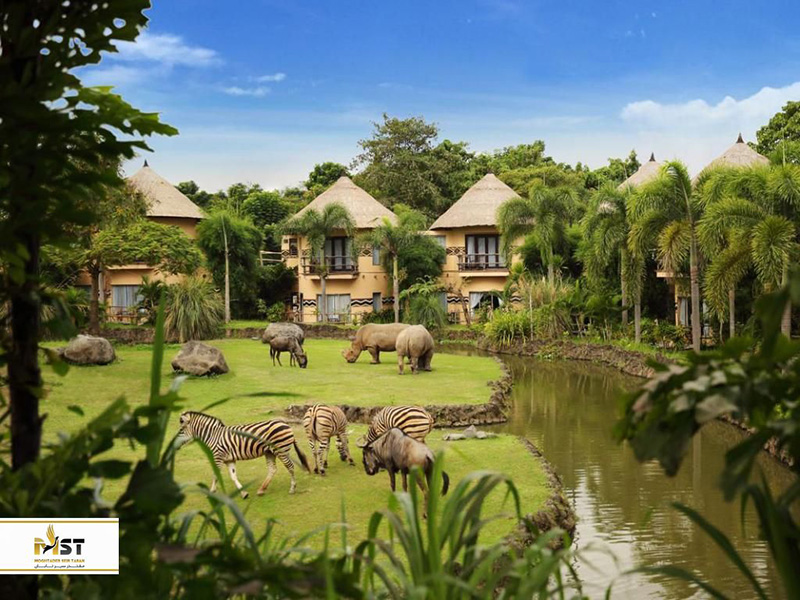 هتل سافاری مارا (Mara River Safari): اگر به دنبال یک انتخاب ویژه و متفاوت در بالی هستید که تعطیلات نوروز خود را در آنجا سر کنید، هتل مارا میتوان یک انتخاب ویژه باشد. یک هتل ۴ ستاره که در پارک سافاری بالی واقع شده و اقامتگاهی شیک و فوقالعاده زیبا است که در طبیعت قرار دارد و حیوانات مختلفی در اطراف آنجا آزادانه گردش میکنند. البته اقامت در این هتل تنها مختص به تماشای حیوانات نیست و شما میتوانید در پارک آبی آنجا بازی کنید، کروزهای جنگلی را تجربه نمایید، در پارک بازی به تفریح مشغول شوید و در نمایشهای فرهنگی و تفریحی شرکت کنید. در مجموعه بودن در هتل سافاری مارا روزهایی به شدت شاد را در محیطی خانوادگی برای شما رقم خواهد زد.