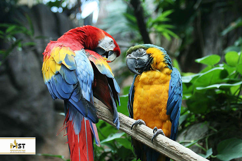 در این باغ نسبتا بزرگ، بیش از ۵۰ گونه پرندهی مختلف از جمله پلیکان، طاووس و طوطی نگهداری میشود. البته این محل با این که به نام باغ پرندگان کیش شناخته میشود و بیشتر فضای آن نیز به نگهداری گونههای مختلف پرندگان اختصاص دارد، اما بخشی نیز برای پستانداران دریایی داشته که خود میتواند جالب توجه باشد.