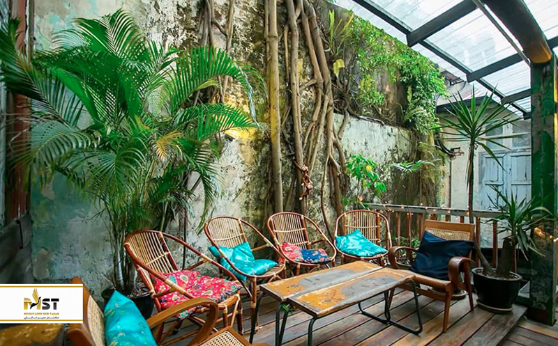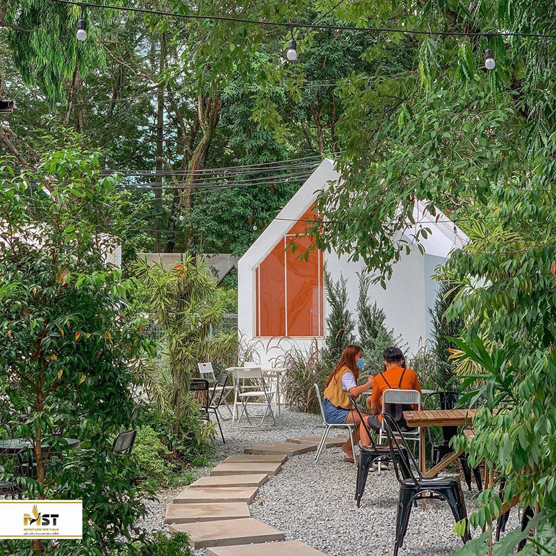 این کافه بسیار زیبا که در فضایی گلخانهای همراه با چوبهای کم رنگ، کاشیهای سفید، و رنگهای پاستلی واقع شده، در کنار نردهها و ساختارهای بتنی و نورپردازیهای زیبا، فضایی صمیمی و در عین حال بسیار جذاب را برای مخاطبان رقم میزند.