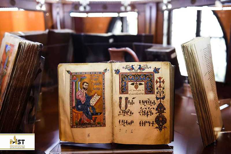 این موزه ۱۵ سالن دارد که در آنجا، آثار هنری و تاریخی به نمایش در آمدهاند که از آن جمله میتوان به بیش از ۲۰ هزار کتیبهی تاریخی و همچنین چندین کتاب و سند متعلق به قرون وسطا اشاره کرد. شما در این موزه میتوانید بزرگترین کتاب دنیا یعنی مشو چارنتیر (Msho Charentir) که در اولین سالهای قرن ۱۳ میلادی نوشته شده با ۲۷.۵ کیلوگرم را مشاهد کرده و در کنارش کوچکترین کتاب جهان که تقویم کلیسا متعلق به قرن ۱۵ میلادی بر میگردد را با ۱۹ گرم وزن را ببینید.