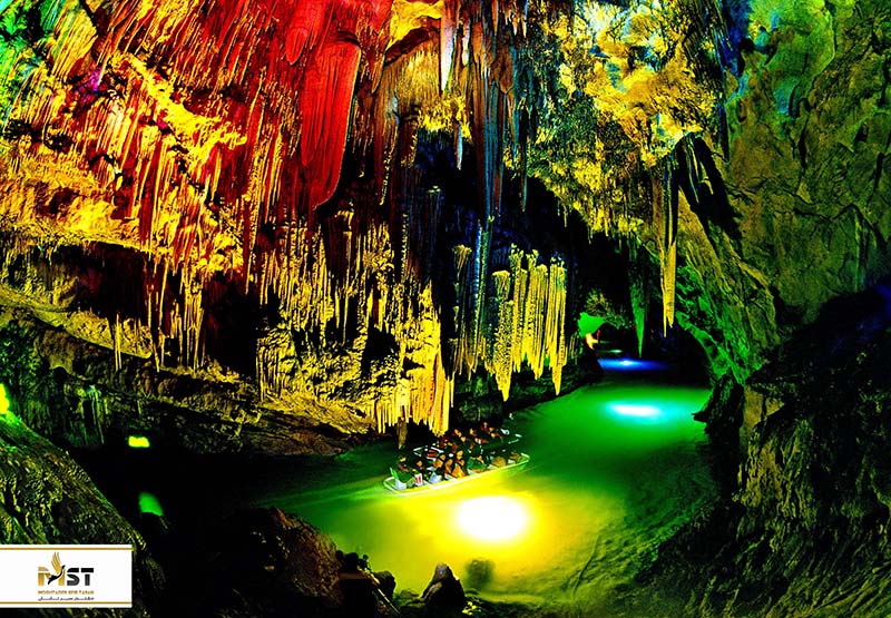 غار آبی بنکسی دنیایی از استالاگمیتها و استالاکتیتها است که به نظر میرسد یک بمب رنگ بزرگ در آن منفجر شده و بیش از پنج میلیون سال پیش شکل گرفت. امروزه بخشهای اصلی آن «غار خشک» و «غار آبی» است. مجموعهای چشمگیر از استالاگمیتها و استالاکتیتها با رنگهای سبز، زرد و قرمز پر جنب و جوش پوشیده شدهاند. این غار حاوی طولانیترین رودخانه زیرزمینی جهان به طول ۵.۸ کیلومتر است که از این تعداد تنها ۲.۸ کیلومتر با قایق قابل دسترسی است. درجه حرارت در غار ۱۰ درجه سانتیگراد و ثابت است بنابراین استفاده از ژاکت و شلوار بسیار توصیه میشود. غار خشک نسبتا کوچک است و فقط ۳۰۰ متر آن در دسترس عموم قرار دارد.