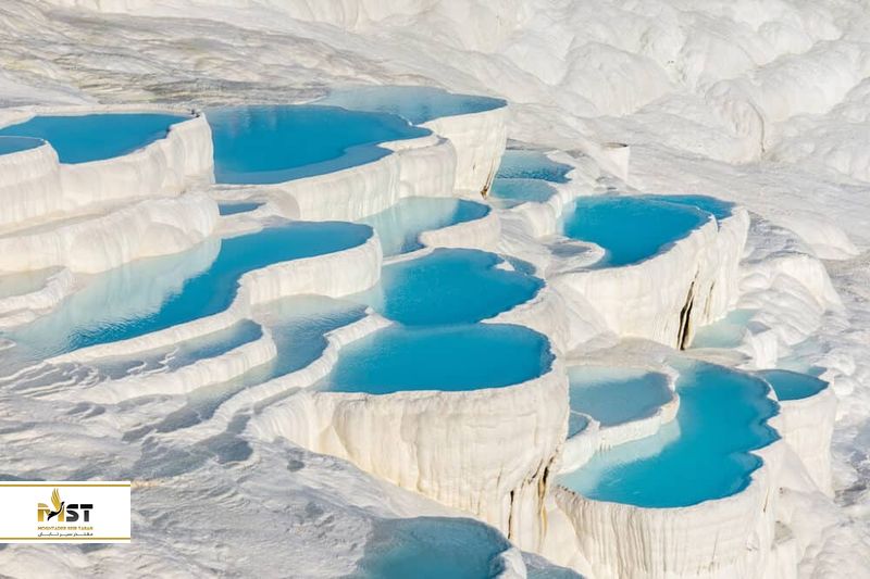 در مورد زیباییهای عجیب ترکیه گفتیم، حتما باید نامی از پاموکاله در نزدیکی کوش آداسی نیز ببریم. از دور که به پاموکاله نگاه کنید، انگار در این مکان برف باریده اما در واقع این استخرهای کوچک طبیعی به هم چسبیده که به رنگ سفید هستند، از مواد معدنی خاص در آب چشمههایی که پایین میریزند شکل گرفته و گردشگرانی که به این محل میروند، امکان آبتنی در آب گرم چشمهها را خواهند داشت. همچنین اگر به بالای تپه بروید، یک اقامتگاه رومی بسیار قدیمی را پیدا خواهید کرد که هنوز بخشهای زیادی از آن سالم است و همچنین استخری رومی و باستانی در آنجا وجود دارد که میتوانید در آن محل نیز شنا کنید.