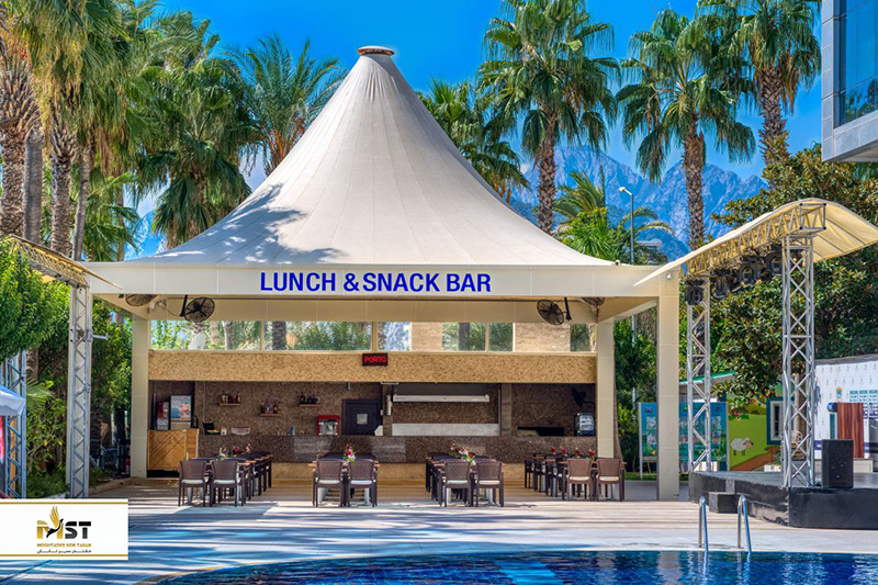 اسنک بار: این مکن در واقع جایی برای سفارش فست فود و اسنکهای متنوع بوده و در یک محیط دوست داشتنی و تقریبا روباز در کنار استخر قرار گرفته است. فضای این محل بسیار عالیست و هم برای نهار و هم شام و حتی میان وعده مناسب است.