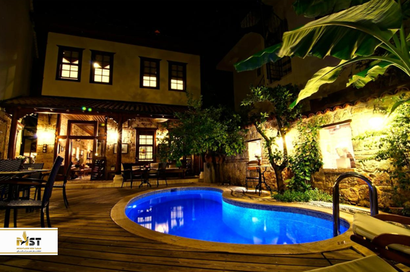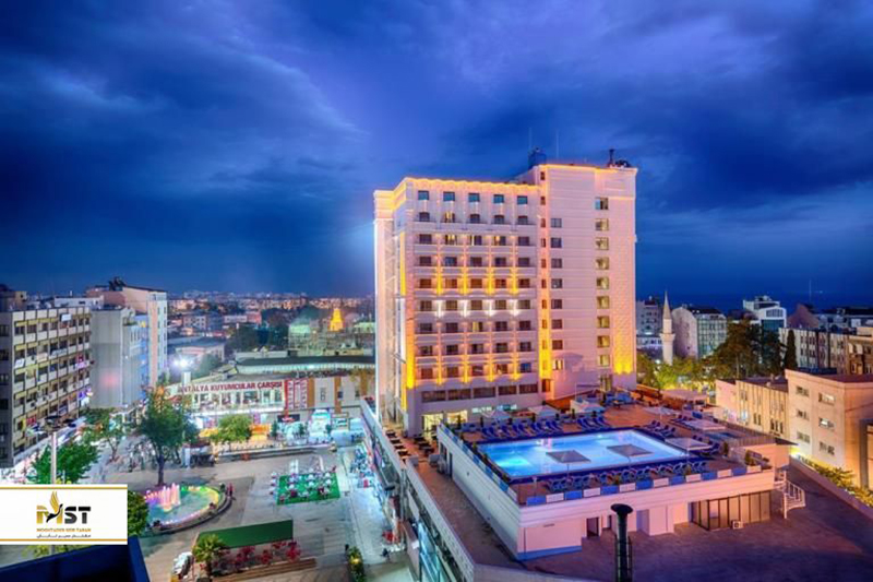 و در نهایت سری میزنیم به این هتل زیبا و باصفا که در مرکز آنتالیا واقع شده و تنها یک دقیقه رانندگی تا بازار قدیمی و ۱۲ دقیقه تا ساحل لارا فاصله دارد. این ملک ساحلی در بدو امر، با یک استخر فصلی در فضای باز به استقبال گردشگران تور آنتالیا میآید. و در ادامه با امکاناتی ایده آل و کامل از جمله وای فای رایگان، خدمات دربان، و خدمات برگزاری عروسی، رزرواسیون ۲۴ ساعته، پذیرایی رایگان روزانه در سالن اجتماعات، رستوران، اسنک بار کنار استخر و خدمات خشکشویی، اقامتی به یادماندنی را برای مهمانان به ارمغان میآورد.