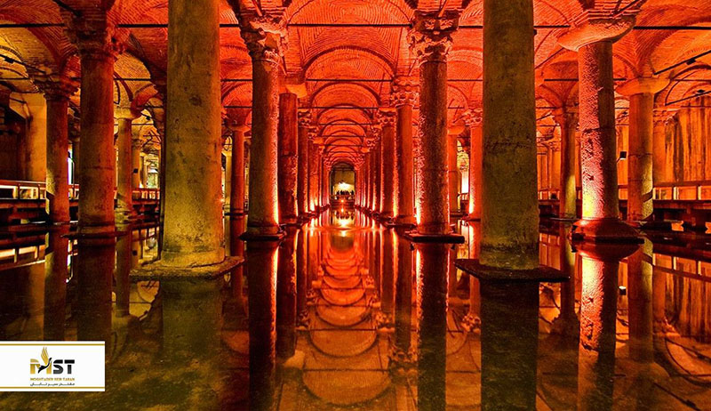 آب انبار باسیلیکا یکی از شگفت انگیزترین جاذبههای گردشگری استانبول است. این تالار زیرزمینی عظیم و کاخ مانند که توسط ۳۳۶ ستون در ۱۲ ردیف پشتیبانی میشود، زمانی منبع آب امپراتوری امپراتوران بیزانسی را ذخیره میکرد. اگرچه این پروژه توسط کنستانتین کبیر آغاز شد اما توسط امپراتور ژوستینیان در قرن ششم به پایان رسید. بسیاری از ستونهای مورد استفاده در ساخت و ساز از سازههای کلاسیک قبلی مرمت شدهاند و دارای حکاکیهای تزئینی هستند که معروفترین آنها پایه ستونهای معروف به سنگهای مدوسا در گوشه شمال غربی با حکاکیهای سر مدوسا است. این آب انبار با ستونهایی که به زیبایی روشن شدهاند و جریان نرم و ثابت آب حال و هوای بسیار خاصی دارد.