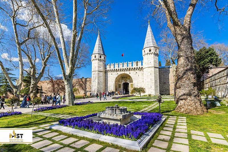 کاخ توپکاپی که در کنار تنگه بسفر واقع شده اولین بار توسط مهمت فاتح در قرن پانزدهم ساخته شد و به عنوان محل زندگی و حکومت سلاطین امپراتوری عثمانی مورد استفاده قرار گرفت. این مجموعه وسیع با حیاطهای مجلل که با کاشیکاریهای پیچیده رنگآمیزی دستی پوشانده شدهاند و اتاقهایی با تزئینات مجلل را به هم متصل میکنند که همگی با دیوارها و برجهای نقوشدار محصور شدهاند نمایشی خیره کننده از هنر اسلامی ارائه میدهد. از بسیاری از نقاط برجسته اینجا، محبوبترین آنها مجتمع حرم جایی که بسیاری از کنیز و فرزندان سلطان روزهای خود را در آن میگذرانند است. بارگاه دوم، جایی که میتوانید از میان آشپزخانههای کاخ بزرگ قدم بزنید و در فضای داخلی خیرهکننده اتاق شورای امپراتوری با هیبت بایستید و بارگاه سوم که شامل اتاقهای شخصی سلطان بود. بارگاه سوم همچنین شامل مجموعهای چشمگیر از یادگارهای پیامبر اسلام را در اتاق نگهبانی مقدس به نمایش درآمده و خانه خزانه داری امپراتوری جایی که با انباری از اشیاء طلایی درخشان و جواهرات گرانبها نگهداری میشود، است.