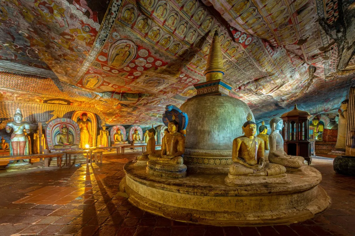 از دیگر جاهای دیدنی سریلانکا، میتوان به معبد غار دامبولا اشاره کرد که یک مکان مقدس بودایی است و ورودی آن در روزهای ماه کامل رایگان است. جالب است بدانید بیش از ۸۰ غار در این منطقه ثبت شدهاند، اما ۵ غار معروفتر از بقیه بوده و با مجسمهها و نقاشیهای چشمگیر تزئین شده اند. قدمت برخی از غارها به ۱۰۰۰ سال قبل از میلاد میرسد، زمانی که سریلانکاهای ماقبل تاریخ در آنها زندگی میکردند!