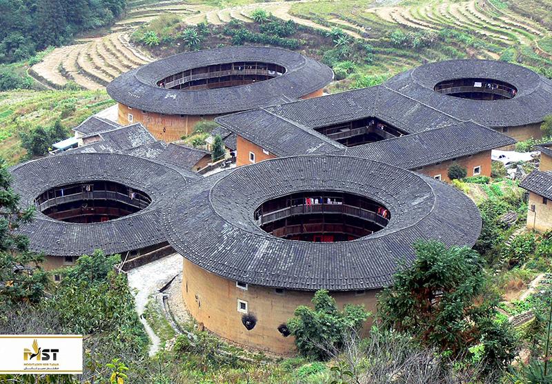 تالو قبل از این که به خاطر معماری و مسائل سیاسی اینقدر معروف شود، برای بیش از ۵۰۰ سال روستا مسکونی به حساب میآمد که مردم زیادی در خانههای دوار آن زندگی میکردند. مهمترین دلیل معروفیت این مکان به خاطر سازههای دایرهای شکل و چند طبقهای است که هم به خاطر مناسبهای اجتماعی و هم به سبب مسائل دفاعی به این شکل ساخته شده بودند. در مجموع ۴۶ بنای این چنینی در فوجیان تالو وجود دارد که نهایتا در سال ۲۰۰۸، یونسکو آنجا را در لیست میراث جهانی قرار داد.