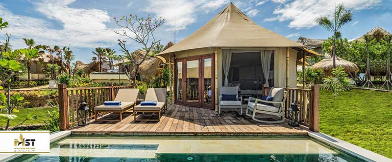از ویژگیهای بالی دینستی ریزورت این است که با همراه با امکانات زیادی که دارد، آن حس و حال بودن در طبیعت را از شما نگرفته و کاملا خود را در فضایی جذاب میبینید. اینمجموعه دارای استخر، امکان سفارش غذا، جکوزی، و حتی سرویس ماساژ بوده و هر آن چه که احتیاج داشته باشید را در اختیار شما میگذارد. این مکان از جمله جاهای خوب برای بچهها هم بوده و فضای بازی مختلف آنها و استخری کم عمق با بازیهای مختلف برایشان تهیه دیده است که کمی از فضای گلمپینگ دور است و باعث شلوغی آنجا نمیشود. البته این را هم در نظر بگیرید که این مکان گرانترین در لیست ما بوده و هزینهای تقریبا دو برابری نسبت به اکثر گزینههایی که معرفی کردیم، دارد.