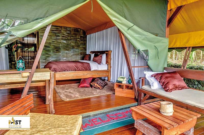 جایی در وسط مزارع برنج اوبود، این مرکز جذاب گلمپینگ واقع شده که تنها شامل ۵ چادر بزرگ در استایل سافاریهای لوکس دارد و همهی آنها دارای فضایی بزرگ، استخر اختصاصی، امکانات کامل رفاهی و خیلی ویژگیهای دیگر هستند اما جالب این که در همین حین، آن حس و حال خاص بودن در طبیعت را نیز حفش میکنند. البته غیر از چادرهای بزرگ، سه کلبهی چوبی به سبک محلی نیز در این محل ساخته شده که قیمت پایینتری داشته و میتوانید در آنجاها اقامت داشته باشید.