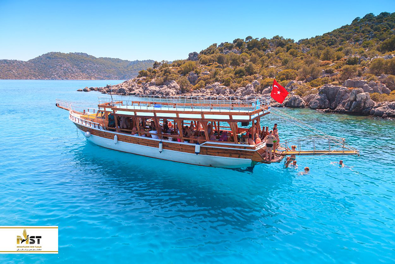 یکی از لوکسترین و بینظیرترین تفریحات تابستانی آنتالیا کروز آبی است. به این صورت که علاقهمندان میتوانند قایقهای لوکسی را رزرو کرده و به گشت و گذار در آبهای نیلگون دریا بپردازند. سفرهای قایق تقریبا از تمام شهرهای ساحلی در امتداد ریویرای ترکیه ارائه میشوند. در تور آنتالیا نیز برای این منظور میتوانید خود را به یکی از استراحتگاههای ساحلی رسانده و از آنجا مسیر یک سفر دریایی کوتاه را در پیش بگیرید. از جمله جاذبههایی که در کروز آبی فرصت بازدید از آنها را خواهید داشت بازدید از شهر باستانی سیمنا که امروزه کاله کوی (Kaleköy) نامیده می شود، شهر غرق شده که بازدید از آن فقط با قایق امکان پذیر است، شهر باستانی فاسلیس (Phaselis)، شهر باستانی المپوس (Olympos) و مراکز غواصی اطراف هستند. این کروزهای آبی تمام روز معمولا در امتداد ساحل سفر میکنند و مناظر جذاب دریایی را کاوش میکنند. همچنین استراحتهایی برای شنا، غواصی و غذا نیز در کشتی ارائه میشود.