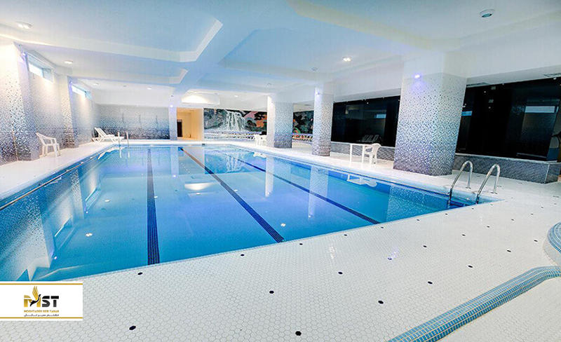 فضای استخر سرپوشیده این مجموعه شامل حوضچه آب سرد، سونای خشک و بخار، جکوزی و کلوپ ورزشی بوده و لحظاتی مفرح را برای مهمانان به ارمغان میآورد. بعلاوه به دلیل ملاحظات سلامتی و امنیت، ورود کودکان زیر ۵ سال به این فضا ممنوع است.