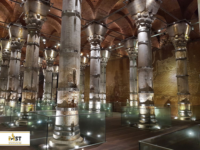 در اینجا شاهد ۳۳۶ ستون به ارتفاع ۹ متر و با سرستونهای زیبای کنده کاری شده خواهید بود. و نقطه عطف این منظره خیره کننده، مجسمههای مدوسا هستند که در زیر دو ستون، در اعماق آب انبار قرار گرفتهاند. گفتنی است اینجا مساحتی مستطیل شکل به طول ۱۴۰ متر و عرض ۷۰ متر را اشغال میکند و با یک پلکان ۵۲ پله، میتوان به آنها دسترسی داشت.