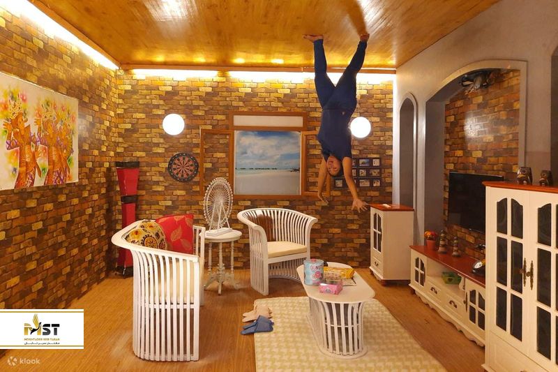 جهان وارونه بالی دارای ۷ اتاق با طراحی خاص با دکوراسیون و مبلمان است که به طور عمدی بر روی سقف چیده شدهاند. شما در اینجا میتوانید از یک روز سرگرمکننده با همسر یا دوستان خود لذت ببرید و ژستهای خلاقانه زیادی داشته باشید، اما در نهایت در عکسها بهعنوان شیرینکاری گرانش به چالش کشیده میشوند. جهان وارونه بالی قطعا مکانی برای خانوادههاست. دوربینهای روی حالت سلفی واقعا در اینجا کار نمیکنند، اما کارکنان مهربانی وجود دارند که به عکسبرداری و راهنمایی شما در اتاقهای آشفته کمک میکنند.