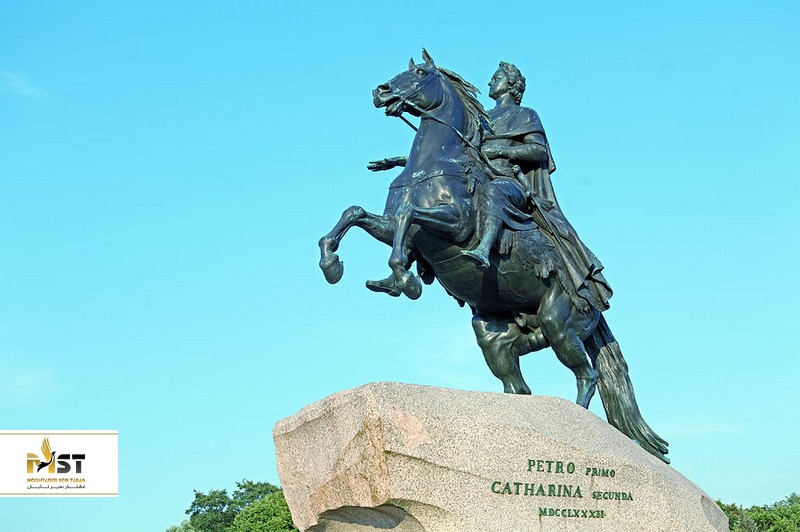 اسب سوار برنزی در اصل مجسمه پتر کبیر است که به دستور کاترین کبیر ساخته شد. البته در آن زمان ساخت این مجسمه حواشی زیادی داشت زیرا دستور داد بر روی کتیبهای بنویسند :" از کاترین دوم به پتر اول 1782" بنابراین تلاش کرد تا جایگاه خود را بر تاج و تخت مشروعیت بخشد. ولی او در واقع نمیتوانست هیچ ادعای قانونی برای تاج و تخت داشته باشد، زیرا یک شاهزاده خانم آلمانی بود. با این حال، این مجسمه تلاشی برای نشان دادن خود به عنوان وارث بود. وقتی پوشکین، یکی از بزرگترین شاعران روسیه، در سال ۱۸۳۳ شعر معروفی در مورد آن نوشت، اسب سوار برنزی به نماد شهر تبدیل شد. امروزه، میتوانید از این مجسمه نمادین که در بالای پایهای بلند در مسیر میدان کاخ، نوسکی پرسپکت یا نوسکی ساخته شده، در کنار سایر جاذبههای تاریخی دیدن کنید.