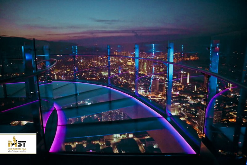 در طبقه 68 The Top، در کومتار یک پل شیشهای دایرهای کوتاه وجود دارد که خارج از ساختمان واقع شده است. این پل کف شیشهای منظرهای به شدت دیدنی و متفاوت از پنانگ ارائه میدهد که باید ببینید. اگر بلیط روزانه آنها تمام شده بود غروب هنگام بازگردید و منظره متفاوتی از شهر را تماشا کنید.