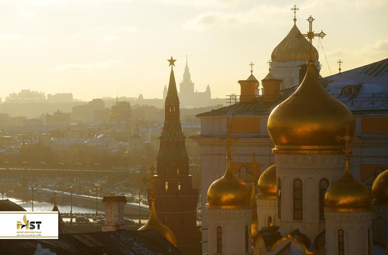 نور زرد صبحگاهی بر گنبدهای طلایی کلیساهای کرملین