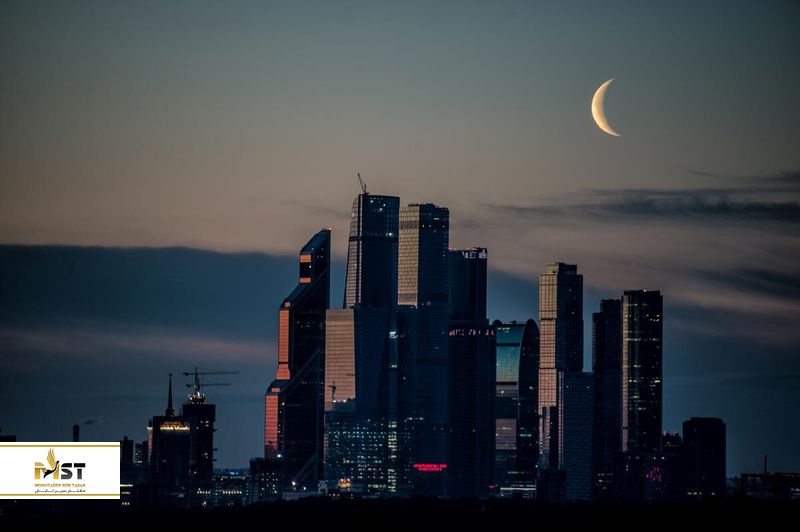 اولین انوار روز بر ساختمانهای منطقه تجاری مسکو