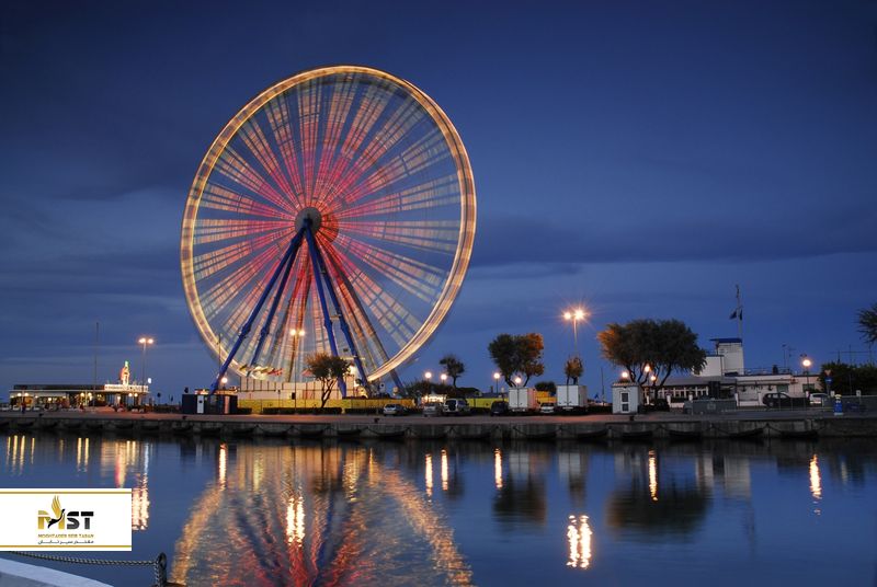 اگر عاشق هیجان و ارتفاع هستید باید بگوییم یک چرخ و فلک عظیم به نام La Ruota Panoramica در لبه ساحل اصلی در ریمینی قرار دارد. این چرخ غول پیکر با ارتفاع ۵۵ متر، وزن تقریبی ۳۶۰ تن و دارای ۲۸ کابین است که میتواند ۱۶۸ نفر را با ظرفیت کامل در خود جای دهد. چه راهی بهتر از سوار شدن در روتا پانورامایکا برای دیدن شهر و استراحت؟ چرخ به آرامی حرکت میکند و یک دور کامل آن تقریبا ۲۰ دقیقه طول میکشد.