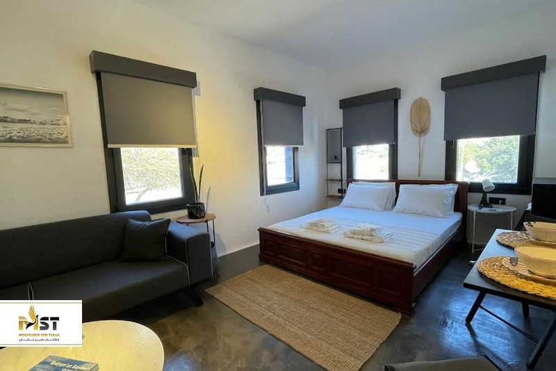 و در ضمن این آپارتمان اتاقهایی راحت با تهویه مطبوع، تلویزیون با کانالهای ماهوارهای، بالکن، حمام و آشپزخانه کوچک با کتری برقی و یخچال را در خود جای داده است. مهمانان میتوانند از قلعه بدروم که در ۲ کیلومتری ملک واقع شده است بازدید کنند و همچنین به خیابانهای پرجنبوجوش بدروم همراه با بارها و رستورانهای متعدد در چند قدمی آپارتمان دسترسی داشته باشند. در ضمن باید گفت فرودگاه بدروم میلاس، ۳۴ کیلومتر با ملک فاصله دارد.