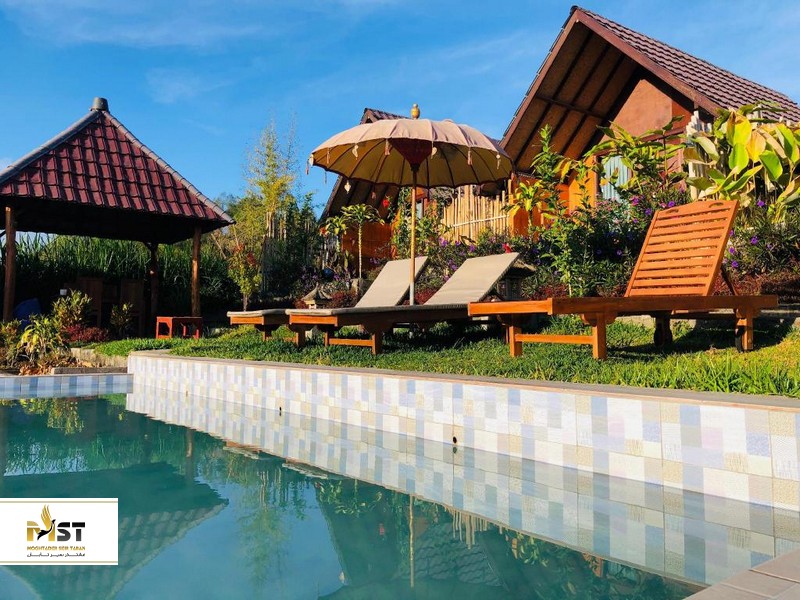 از طرفی این اقامتگاه، دارای رستوران و بار بوده که انواع نوشیدنیها و غذاهای لذیذ را سرو میکنند و در عین حال چشم اندازی به مناظر شگفت انگیز اقیانوس و کوه آگونگ و مزارع برنج اطراف دارد. بعلاوه یک استخر بزرگ با الهام از طراحی استخرهای مدیترانه همراه با کاشیهای سفید را در اینجا شاهد هستید که در کنار تاب، سرسره و جکوزی اقامتی مفرح را برای ساکنان به ارمغان میآورند. تراس آفتابگیر، وای فای رایگان، روم سرویس و پارکینگ رایگان، از دیگر امکانات این اقامتگاه خاطره انگیز به شمار میآیند. اتاقها مجهز به تهویه مطبوع و فضای نشیمن بوده و از کلیه وسایل آسایش و راحتی برخوردار است.