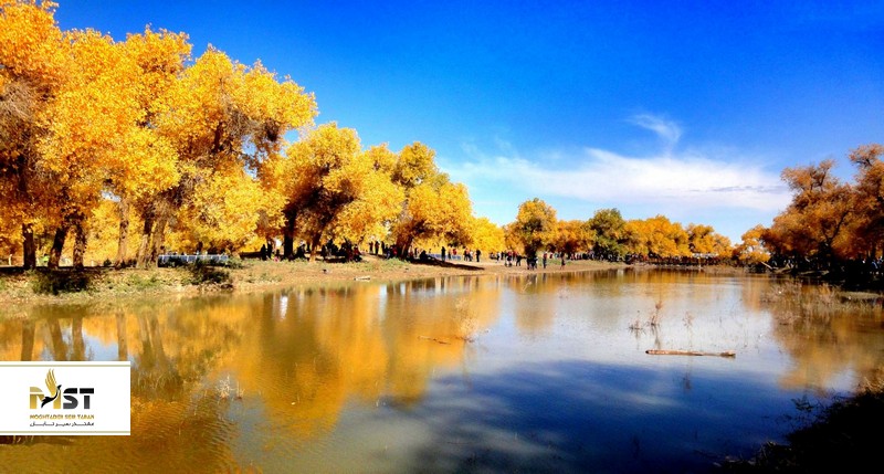 اجینا شهر کوچکی است که در لبه غربی مغولستان داخلی قرار دارد. بسیاری از مسافران تور چین دوست دارند در پاییز از اجینا دیدن کنند و برگهای صنوبر طلایی فرات، چمنزارهای بیکران با گوسفندان در حال چراع و صحراهای وسیع با شترها را ببینند. جنگل فرات اجینا پوپولوس، یکی از تنها سه جنگل فرات پوپولوس در جهان، مساحت وسیعی به وسعت ۳۸۰۰ کیلومتر مربع را پوشش میدهد. درختان اینجا از اوایل مهر شروع به زرد شدن میکنند و در تضاد با آسمان آبی و کویر وسیع، مسافران و عکاسان زیادی را به سمت خود میکشاند. در جنوب جنگل فرات اجینا پوپولوس، صحرای بداین جاران قرار دارد که دارای دریاچههای رنگارنگ و صدها تپه شنی است. علاوه بر این، ما به شما پیشنهاد میکنیم از دریاچه Juyanhai دیدن کنید که به شکل یک هلال ماه باریک درازی است که نمایی دیدنی و زیبا مخصوصا برای عکاسی دارد به علاوه طلوع خورشید اینجا شگفت انگیز است.