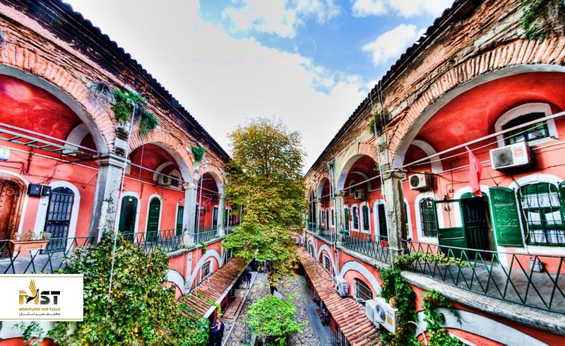 در نهایت با ورود به این مکان شاعرانه، احساس میکنید به دنیایی دیگر قدم گذاشتهاید. این کاروانسرای دلربا، ممکن است به یکی از نقاط مخفی مورد علاقهتان بدل شود. سردر غرفهها به رنگ صورتی بوده و آبنمای مرمرین، زمین سنگ فرش بسیار زیبا و درختان باشکوه، حال و هوایی فتوژنیک به آن میبخشند. در واقع این مکان، برای ثبت عکسهای یادگاری بسیار ایده آل است. بعلاوه، یک کافه جذاب در طبقه بالا وجود دارد که چشم اندازی به این منظره شگفت انگیز داشته و چای ترکی و آب انارهای تازه و گوارایی سرو میکند.