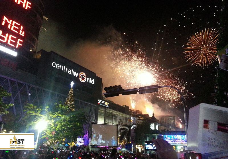 اگر هم اهل مهمانی و هم اهل خرید هستید، توصیه میکنیم برای همراه شدن با جشن سال نو میلادی در تایلند به خیابان مرکزی جهان بانکوک بروید. این خیابان لحظه تحویل سال نو را با شمارش معکوس و آتش بازیهای باشکوه جشن میگیرد. همچنین علاقمندان میتوانند ساعتها قبل از لحظه تحویل به خرید در یکی از بزرگترین مراکز خرید در جنوب شرقی آسیا، دنیای مرکزی (Central World) رفته و از تخفیفات وسوسهانگیز آن بهره ببرند. ناگفته نماند که در این مکان با ازدحام بسیار عظیم جمعیت همراه خواهید بود. پس خود را آماده یکی از شلوغترین مراسمی که تا به حال دیدهاید، بکنید.