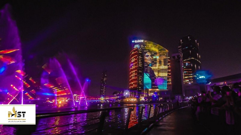 این نمایش بزرگ که هرروز در خلیج فستیوال در مقابل مرکز خرید انجام میشود، رکوردهای مختلفی را در دنیا شکانده و به واقع نمایشی فوقالعاده زیباست که شما را مبهوت خواهد کرد. این نمایش شامل نورپردازی فوقالعاده زیبا با استفاده از تکنولوژیهای خاص بوده و همراه آن افکتهای صوتی نیز و نمایش آب نیز به اجرا در میآید.