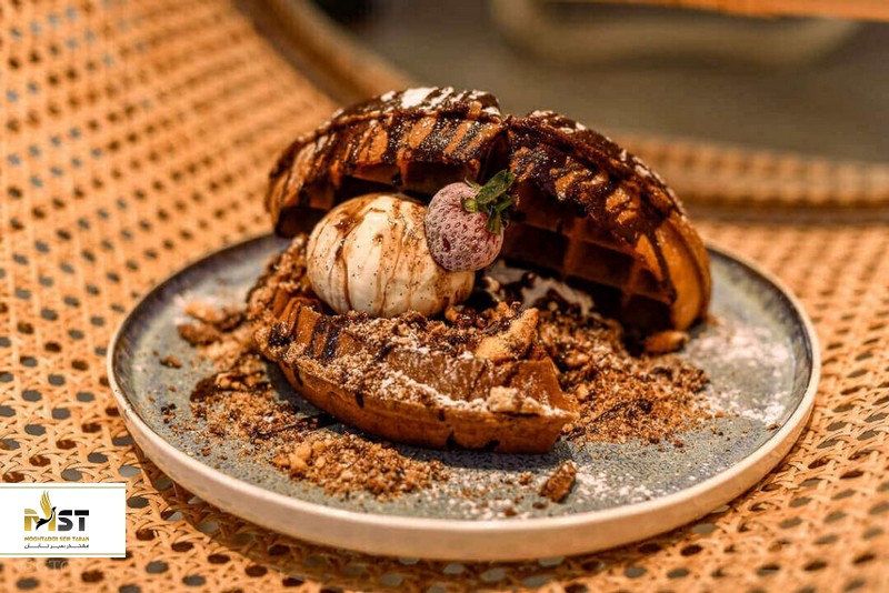 وافلها با میوههای تازه و یک لیوان بستنی سرو میشوند و رویشان با سس شکلات و توت فرنگی و خردههای کوکی پوشانده میشود. این تصویر زیبا، به تنهایی میتواند سوژه ای عالی برای ثبت عکسهای اینستاگرامی باشد. هر چند که محیط این کافه که از ظاهر و دکوراسیون مدرن و ساده برخوردار است نیز، آرامش و زیبایی را به مخاطبان هدیه میدهد.