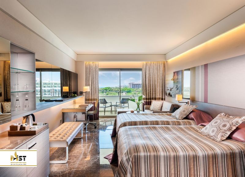 این ریزورت اتاقهایی لوکس و جادار را با کلیه امکانات رفاهی مجلل در خود جای داده است که از بالکن، به فضای سرسبز و مفرح اطراف دید دارند. همچنین نمایشهای شبانهای را برگزار میکند که در آن از دی جیهای مشهور جهان استفاده شده است. علاوه بر این، یک فضای نشیمن مجلل که در آن نمایشگاههای بینالمللی برگزار میشوند و یک مرکز نمایش که اخیرا با آخرین فناوریها، سیستمهای نور و صدا بازسازی شده است نیز در این اقامتگاه در اختیار مهمانان هستند. بدون شک این ریزورت، یکی از بهترین استراحتگاههای ترکیه در سال ۲۰۲۳ محسوب میشود.