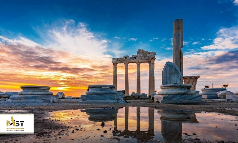 یکی از جاذبههای گردشگری آنتالیا که فرصت گرفتن عکسهایی زیبا و دیدنی را نیز برای توریستها فراهم میکند، شهر باستانی سیده است. در این مکان چیزهای زیادی برای دیدن وجود دارد که از جمله آنها میتوان به معبد آپولو اشاره کرد. به خصوص در ساعات تاریک شب با نورپردازیهای زیبا و همچنین تصویری از غروب خورشید منظرهای بسیار جذاب و دیدنی را به نمایش میگذارد. شما میتوانید از قبل غروب خورشید به سمت شهر باستانی سیده حرکت کرده و با گشت و گذار در میان فروشگاههای کوچک متنوع مشغول شوید و در کنار عکاسی سوغاتیهای جذابی برای دوستان و آشنایان خود از ترکیه خریداری کنید.