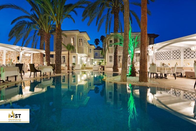 انتخاب آخر ما هم جزو مجللترین بوتیک هتلهای آنتالیا بوده که دارای ۲۴ اتاق زیباست که در طراحی آنها و فضای کلی هتل از رنگهای روشن استفاده شده است. تمامی اتاقها دکور کلاسیک با جزییات بالا داشته و فضای حیاط آنجا نیز با استخری بزرگ و باغی زیبا، جذابیت بالایی دارد. نزدیکترین ساحل به الگانت ایست هتل تنها ۱۰ دقیقه فاصله دارد. نزدیکی به ساحل برای آنها که به تور آنتالیا میروند، اهمیت ویژهای دارد و از این نظر، تقریبا تمامی انتخابهای ما در این نوشته به ساحل نزدیک بودهاند.