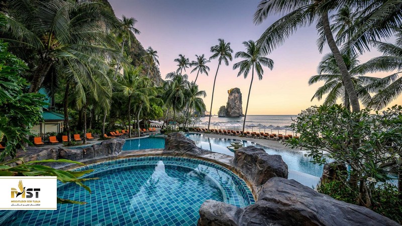 ریزورت و اسپا Bhu Nga Thani در ساحل ریلی: اینجا یک اقامتگاه بسیار پرطرفدار است و مشتمل بر استخری بسیار رمانتیک درست روی دریاست که چشمان مخاطبان را نوازش میکند.