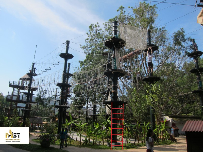 این بخش از پارک در واقع مجموعهای از چندین بازی ماجراجویی است که به وسیلهی طناب و چوب بر بالای درختان تعبیه شده است. تنها همین یک قسمت به اندازهی خیلی از پارکهای ماجراجویی که در جاهای مختلف مشاهده کردهاید، بازیهای مختلف در خود دارد.