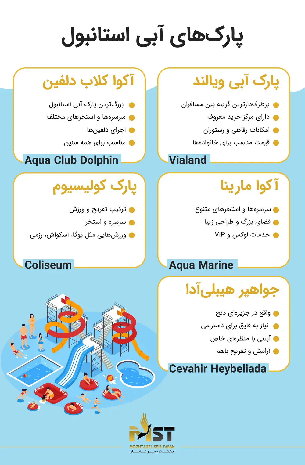 ما در این مقاله همراهتان هستیم تا شما را با بهترین پارکهای آبی استانبول آشنا کنیم و اطلاعاتی کامل از قیمتها، امکانات خاص و پیشنهادات ویژه از آنها در اختیارتان قرار دهیم. اگر تصمیم دارید با تور استانبول به این شهر زیبا سفر کنید یا به دنبال تور لحظه آخری استانبول برای تجربهای بهیادماندنی هستید، میتوانید برنامهریزی بهتری برای سفر و تفریح به همراه خانواده یا دوستانتان داشته باشید. پس تا پایان این مطلب همراه ما باشید.