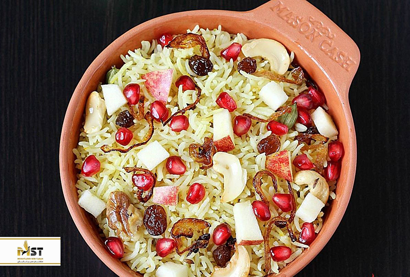 - محتویات اصلی: برنج، میوه تازه و خشک، زعفران