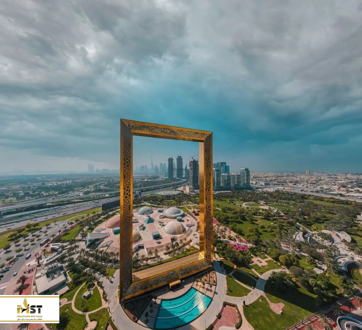 همچنین این قاب، دارای دو برج غول پیکر به ارتفاع خیره کننده ۱۵۰ متری است که از طریق یک پل به طول ۹۳ متر به هم متصل شدهاند و از این رو، شبیه قاب عکس به نظر میرسد. از این پل، منظره ۳۶۰ درجهای از دبی را شاهد خواهید بود. از یک طرف، دبی قدیمی و جاذبههای آن را میبینید و از طرف دیگر، تصاویری از دبی جدید را دارید. همچنین یک سکوی تماشای کامل با کف شیشهای وجود دارد و این احساس را القا میکند که در حال راه رفتن روی هوا هستید.