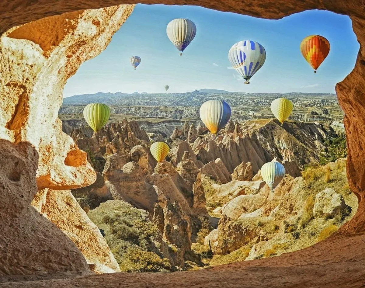 جالب است بدانید که در گذشته مردم کاپادوکیا صخرههای آتشفشانی نرم این منطقه را تراشیده و خانهها، کلیساهای غاری و صومعهها و حتی شهرهای زیرزمینی که صدها فوت عمق دارند را ساختهاند. به طوری که در حال حاضر بسیاری از این سازهها اکنون به مناطق گردشگری تبدیل شدهاند. غارها نیز به هتلهایی لوکس تبدیل شده و یک انتخاب محبوب برای اقامت گردشگران محسوب میشوند. همان طور که گفته شد کاپادوکیا به شهر بالنها شهرت داشته و برای تماشای پرواز بالنها که تفریحی کاملا رایگان هم هست، میتوانید صبح زود به بهترین مکانها برای تماشای بالنها در کاپادوکیا و آسمان را نگاه کنید تا پرواز بالنهای رنگارنگ در آسمان آبی را که گویی یک تابلوی نقاشی هستند، تماشا کنید. همچنین در صورت عدم محدودیت در بودجه سفر میتوانید با پرداخت هزینه بالن سواری را تجربه کنید.