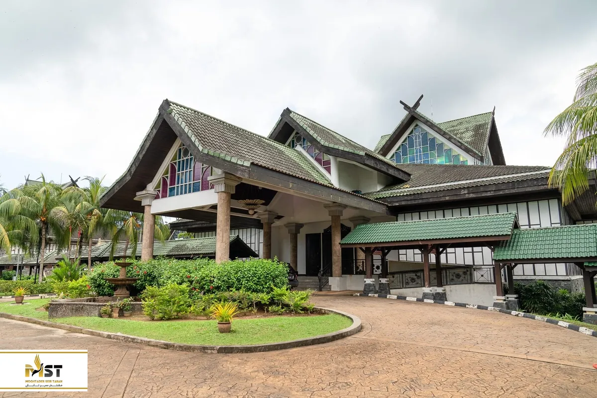 از طرفی ساختمانی که گالری در آن قرار دارد، از طراحی جالبی برخوردار است. بنا از بیرون، دارای المانهای معماری سنتی مالایی است. اما فضای داخلی، دو سقف بسیار پرآذین با شیشههای رنگی و گچ کاری ظریف را ارائه میدهد. بعلاوه این مجموعه، در میان باغهای دلپذیر و مفرح واقع شده است.
