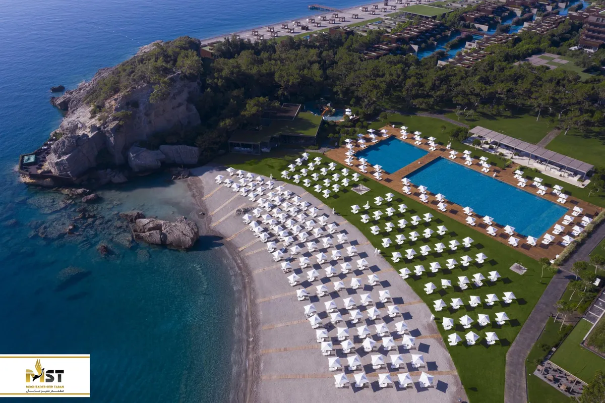 هتل ۵ ستاره Maxx Royal Belek از دیگر گزینههایی است که نمیتوان از آوردن نام آن در لیست هتلهای رمانتیک آنتالیا برای ماه عسل چشمپوشی کرد. این هتل بینظیر که دقیقا در کنار ساحل واقع شده در کنار خدمات عالی خود دارای معماری بسیار زیبا و لاکچری نیز است. به این صورت که ساختمان اصلی آن به صورت نیم دایرهای در اطراف استخر قرار گرفته و با جزایر سبز در هم آمیخته شده است. همچنین در جلوی آن استخرهای دیگری و البته ویلاهایی در امتداد ساحل ردیف شدهاند نیز وجود دارند. این ریزورت دارای یک آبگرم مجلل و منطقه سلامتی و البته یک پارک آبی با ۱۰ سرسره آبی متنوع است که در صورت تمایل میتوانید ساعتها به تفریح و آبینی در آن به همراه شریک زندگی خود بپردازید. از دیگر امکانات تفریحی که در هتل Maxx Royal Belek وجود دارد، یک زمین گلف نسبتا بزرگ در آن است که میتوانید اوقات بیکاری خود را با سرگرم شدن در آن بگذرانید.