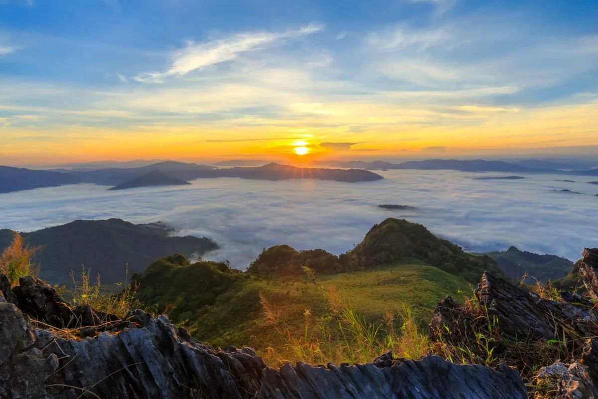 در میان محبوبترین کوههای تایلند، پارک ملی فو لانگ کا با ارتفاع ۱۷۲۰ متر به زیبایی هرچه تمامتر خودنمایی میکند. از این کوهستان میتوانید شاهد منظرهای فوقالعاده از درههای روستایی، رخنمونهای سنگ آهک و جنگلها باشید. اینجا یک منطقه مه آلود است، بنابراین اغلب میتوانید مه را بر فراز این مناظر پانوراما ببینید. این منظره خصوصا وقتی خورشید از لابلای مه عبور میکند، بسیار مسحور کننده است.