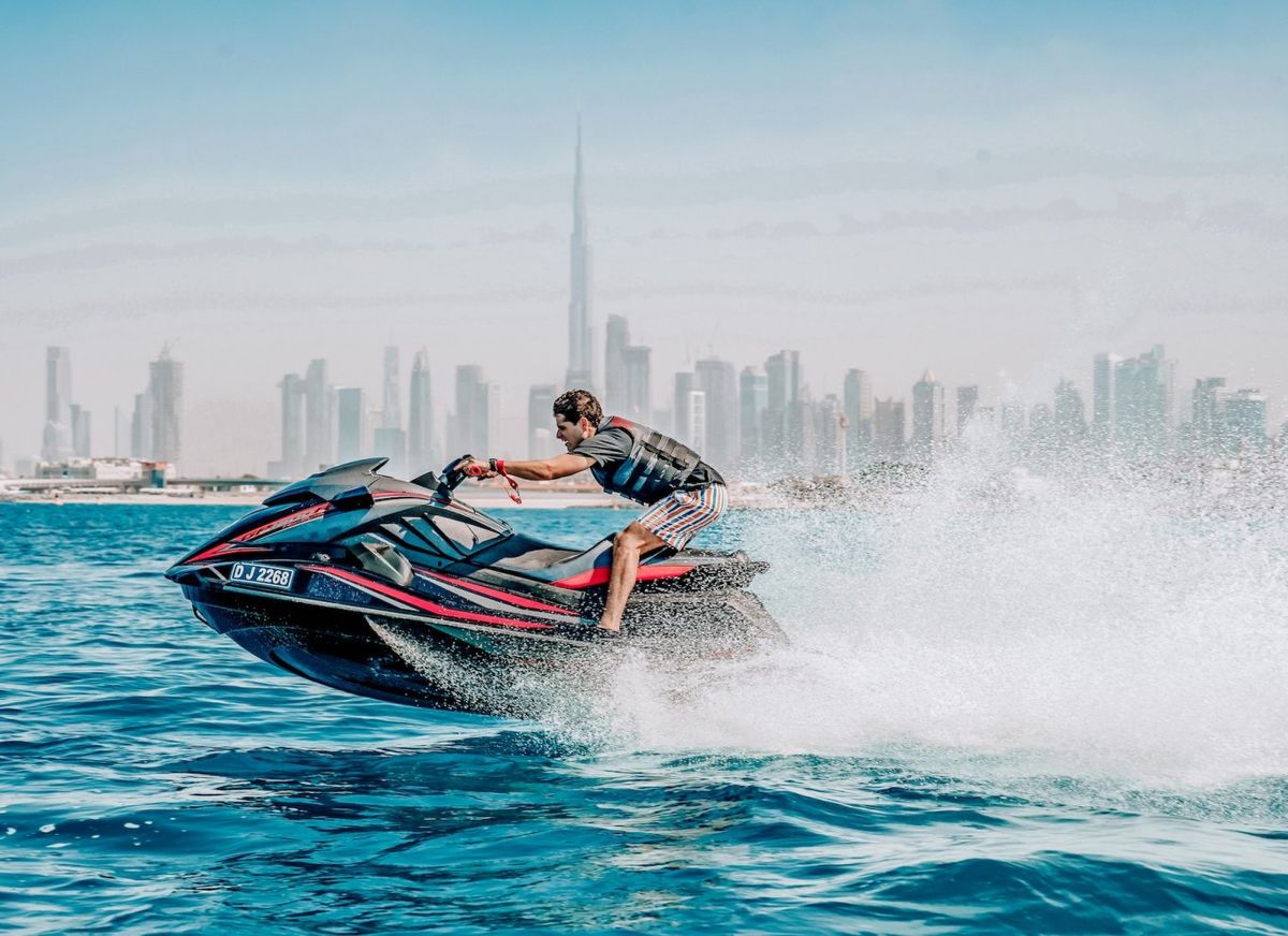 جت اسکی محبوب ترین تفریحات آبی دبی است که در اکثر سواحل جهان هم در دسترس قرار دارد. از هیجان حضور در جت اسکی و سواری با سرعتی که با قدرت محض آن تغذیه می شود، لذت ببرید. ورزش آبی دریای آبی در دبی یکی از ارائه دهندگان پیشرو خدمات جت اسکی با تجهیزات با کیفیت و کارکنان حرفه ای و دارای مجوز می باشد. سوار بر جت اسکی در آب های زلال خلیج فارس شوید و از دیدنی های دبی مارینا دیدن کنید. با دوستان و خانواده خود از مارینا ام سوقیم دیدن کنید و از بین یک تور نیم ساعته، یک ساعته یا دو ساعته جت اسکی را انتخاب کنید!