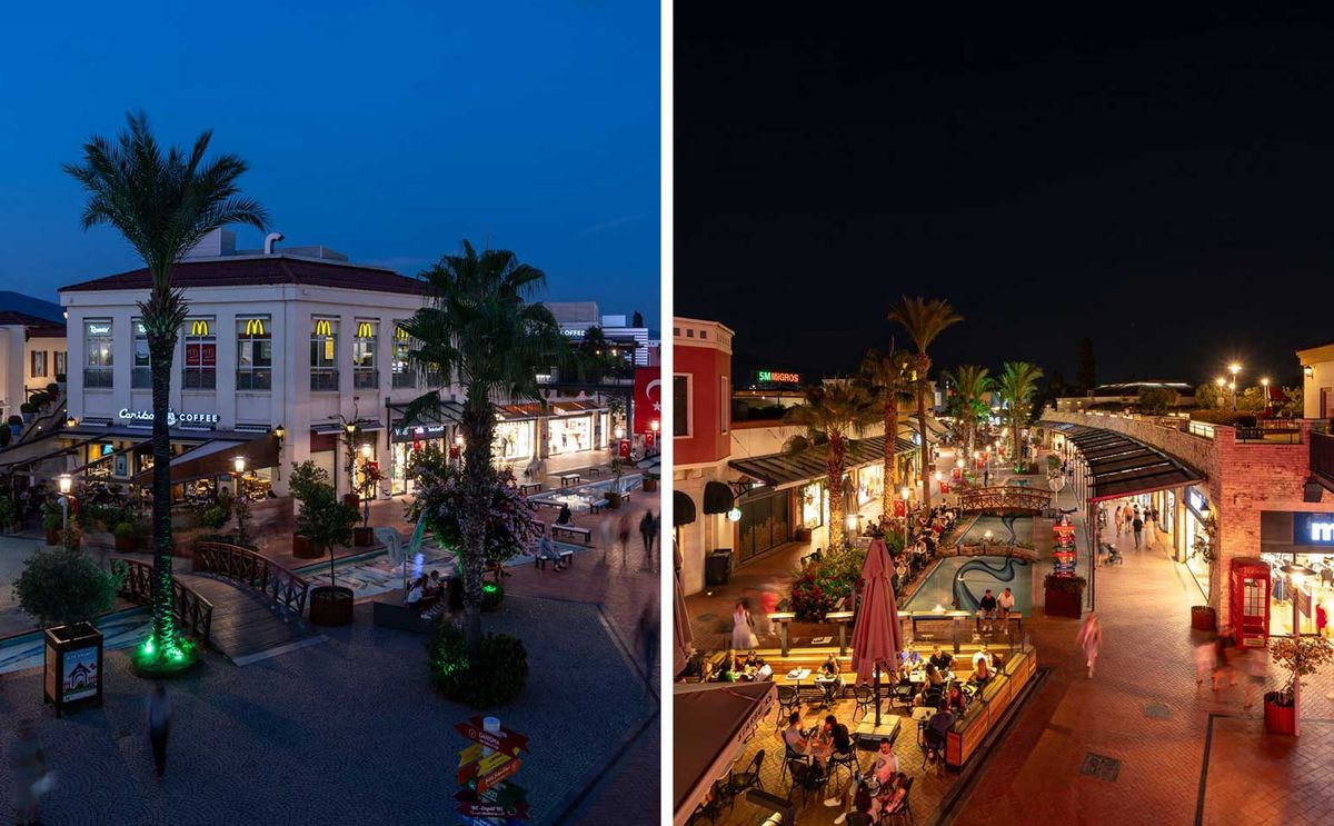 ۱: فضای روباز با معماری خاص: برخلاف بسیاری از مراکز خرید سربسته، این مجموعه دارای خیابانهای سنگفرش و فضای باز است که تجربهای متفاوت از خرید را فراهم میکند.